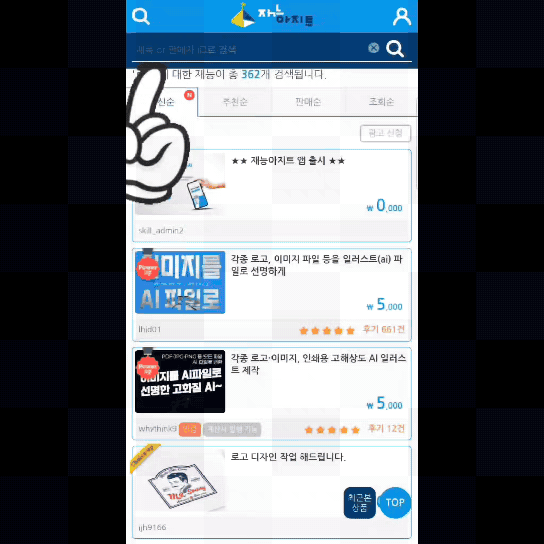 재능아지트는 위에 언급한 여러 데이터를 종합적으로 분석하여 빠른 응대와 성실한 판매현황을 보여주시는 판매자분들의 재능을 우선적으로 상단노출합니다.