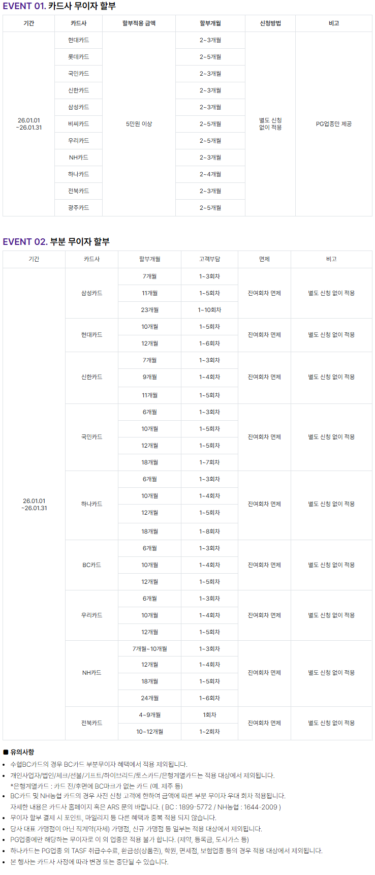 KG이니시스와 카드사가 함께하는 26년 1월 무이자 행사와