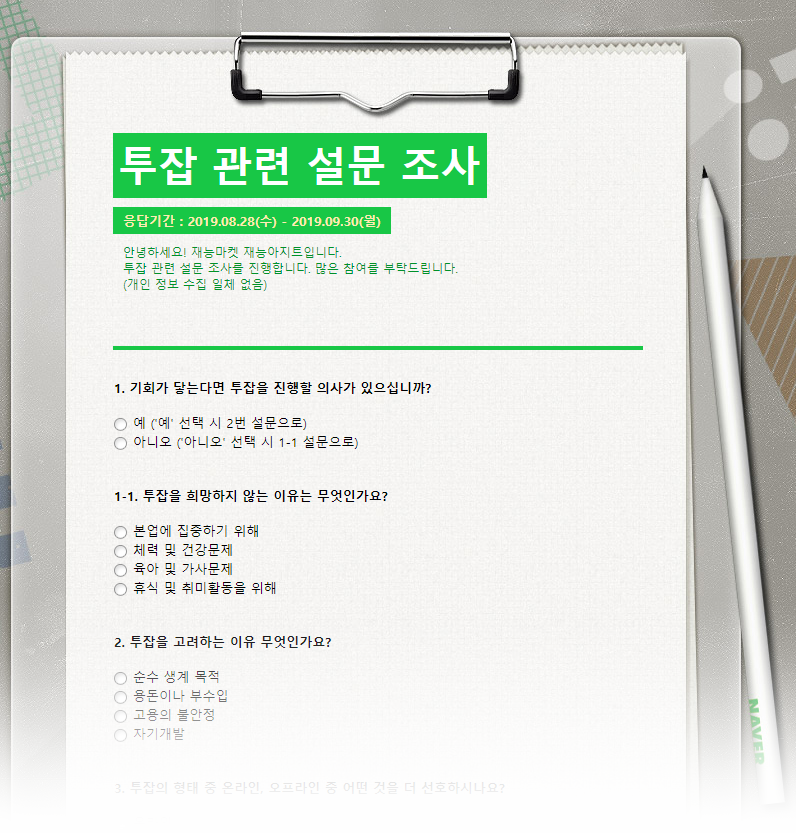 '투잡' 관련 설문조사를 진행합니다. (기간 : 19.08.28 ~ 19.09.30)