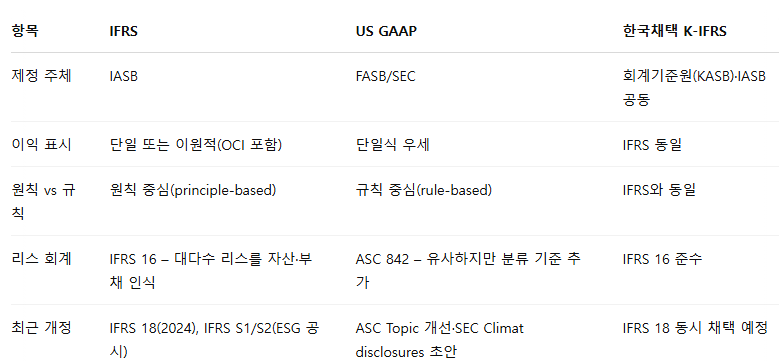 IFRS vs US GAAP vs 한국채택 K-IFRS