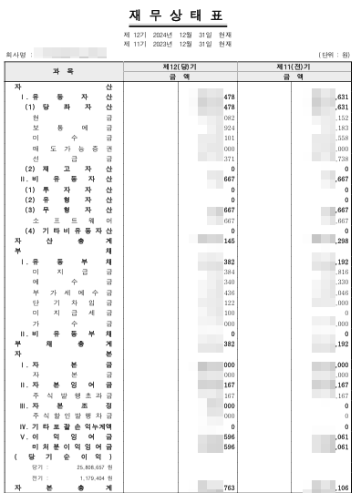 • 용도: 기초~기말 자본 항목별 변동과 배당·순이익 전입·자기주식 등을 명확히 공시.