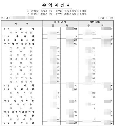 • 핵심 지표: 매출총이익, 영업이익, 법인세비용차감전순이익, 당기순이익.