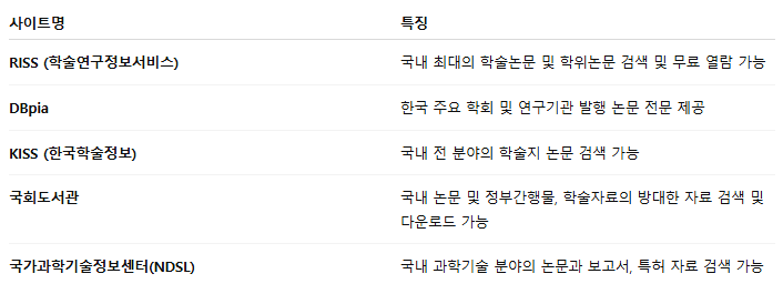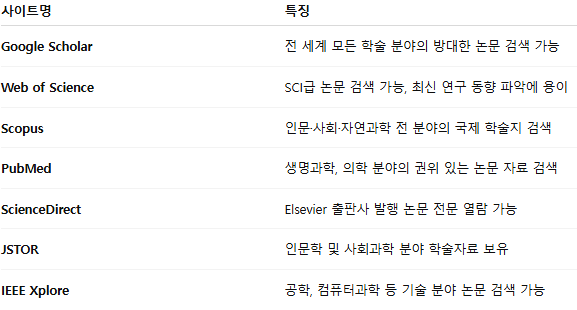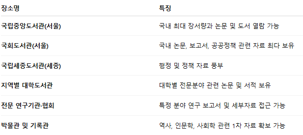 다음은 논문을 위한 자료 수집에 반드시 필요한 온라인 및 오프라인
