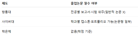 - 학점은행제 (학점 누적만 충족하면 졸업, 논문 없음)