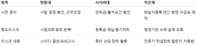 - 사이버대: 과제·팀프로젝트 혼합으로 시험 부담 분산.