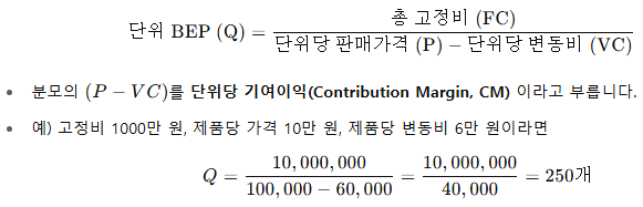 수량 BEP = FC / CM