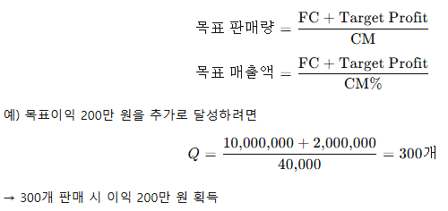 단순히 손익분기(영업이익 = 0) 뿐 아니라, 원하는 이익(Target Profit)을 얻기 위해