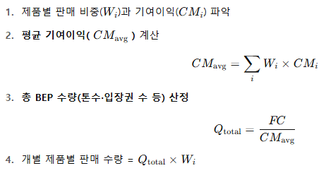 한 기업이 여러 제품을 동시에 판매할 때는 가중평균 기여이익을 활용합니다.