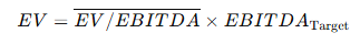 거래 시점 EV/매출, EV/EBITDA, P/E 등 배수 산출