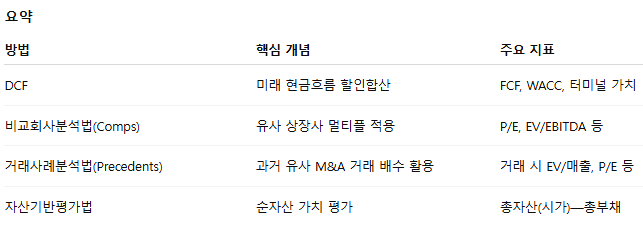 기업가치평가(밸류에이션)는 크게 네 가지 대표 기법으로 나뉩니다.