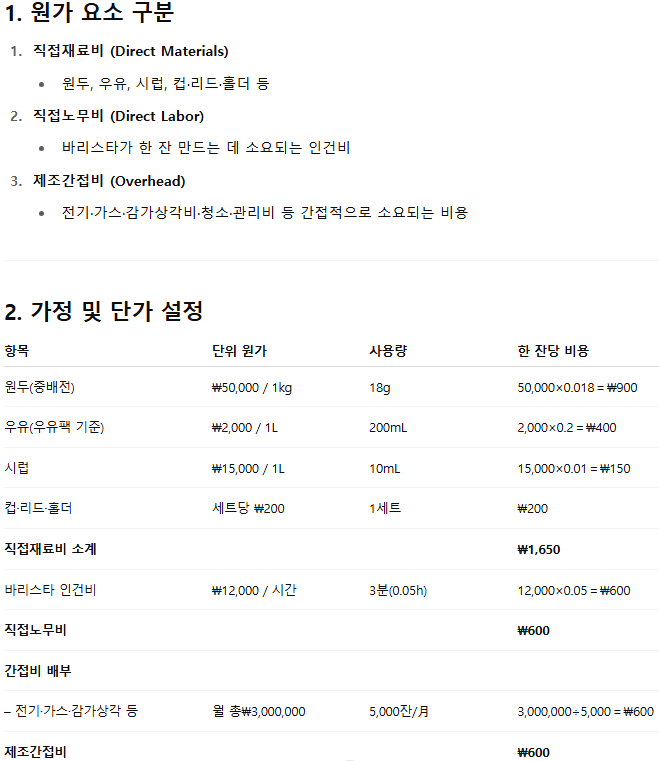 2) 변동비(Variable Cost) 항목·단가 파악