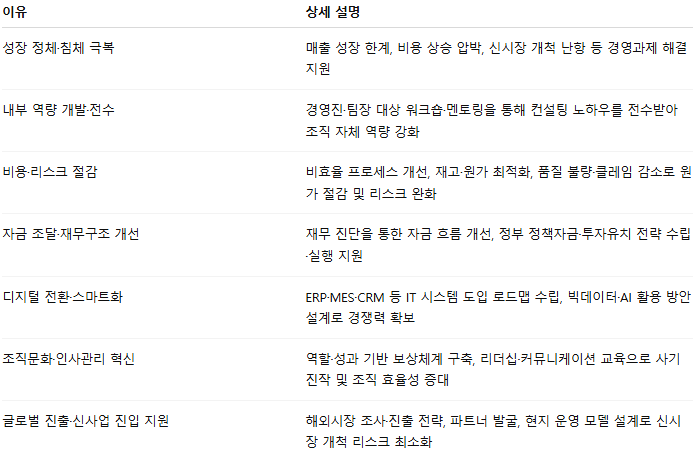 - 의의: 객관적·비교 가능한 지표 제공, 리스크 사전 인지, 경영전략 수립 지원
