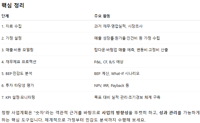 - 정기적 업데이트: 실제 실적과 차이가 크면 가정을 재검토·조정