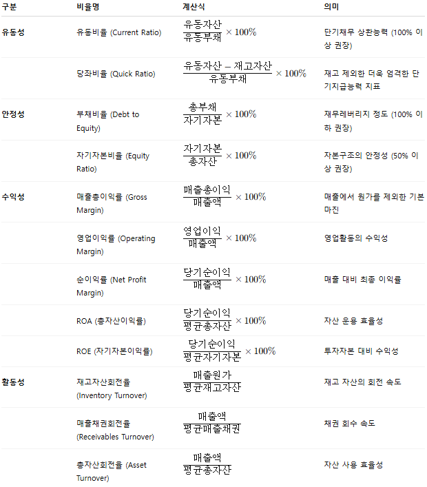 - 종합적 평가: 여러 비율을 함께 분석해, 한눈에 재무 상태와 성과를 평가