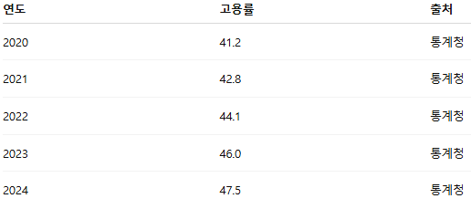 예시:표 1. 2020~2024년 청년 고용률 변화(%)