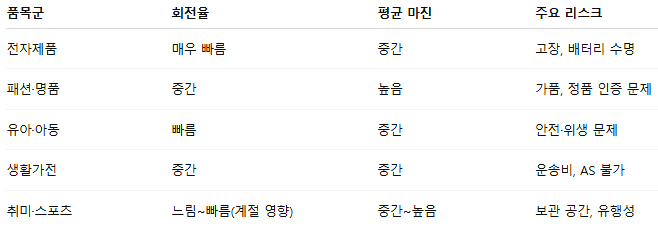 • 리셀: 특정 품목군(예: 전자기기, 명품)에 집중해 전문화