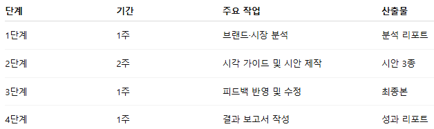 • 일정 표현: “1주차 – 기획 / 2주차 – 디자인 / 3주차 – 피드백 반영”