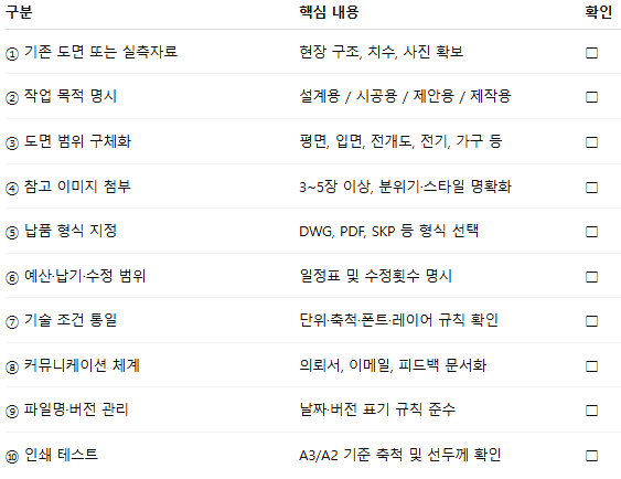 도면을 요청하기 전에 준비해야 할 자료와 기준을 체계적으로 갖추는 것이 핵심이다.