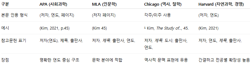 5.3 APA, MLA, Chicago, Harvard 스타일 비교
