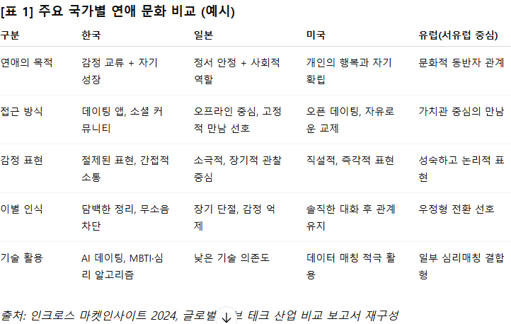 이 표는 단순히 연애 방식의 차이를 넘어,