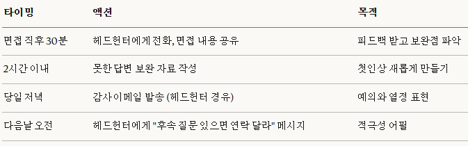 • 업무의 연속성 어필: "입사 후 3개월 내에 제가 달성할 구체적 마일스톤은 이것입니다" (로드맵 제시)