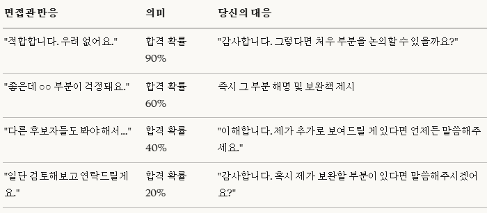 면접관: "논리적이네요. 알겠습니다. 내부 검토해보고 연락드리겠습니다."