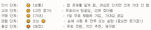 고객 여정 지도에서 감정 곡선이 급격히 떨어지는 지점이 바로 이탈이 발생하는 구간입니다.