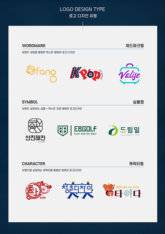 단순한 모양과 글씨체에서 그 업체에서 추구하는 이념, 제공하는 서비스 등 다양한 것을 나타냅니다.