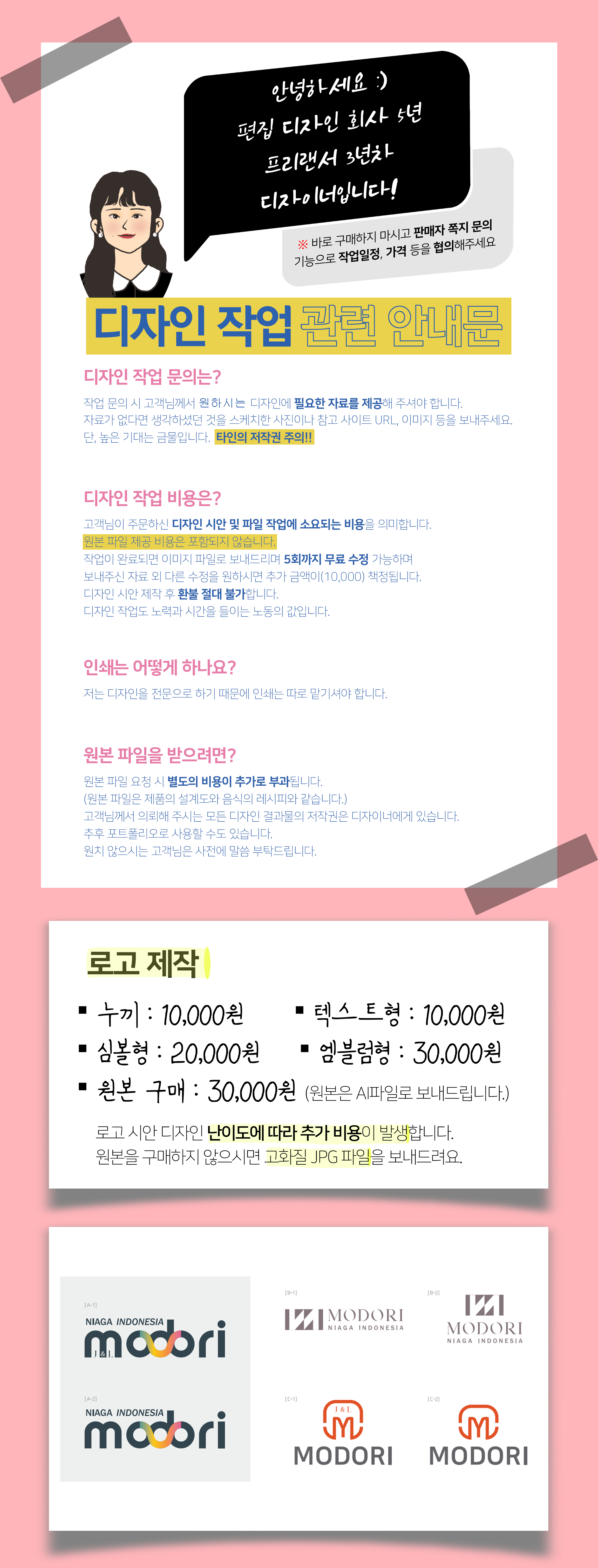 바로 구매하지 마시고 "판매자 쪽지 문의" 기능으로 작업일정, 가격 등을 협의해주세요
