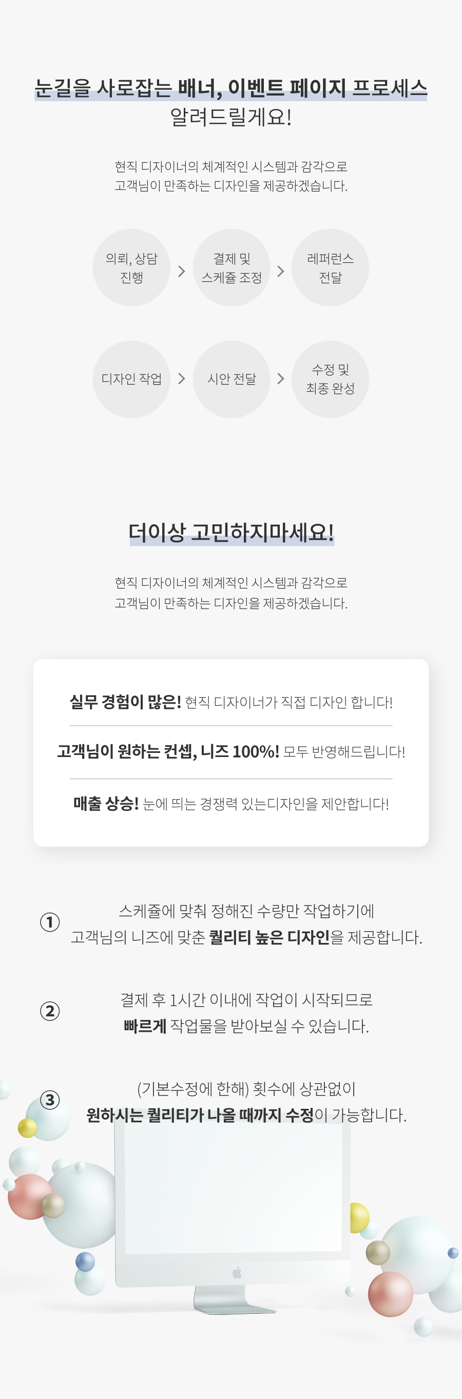 의도와 컨셉을 파악해 원하는 퀄리티의 작업물을 선사하기 위해 노력하겠습니다!