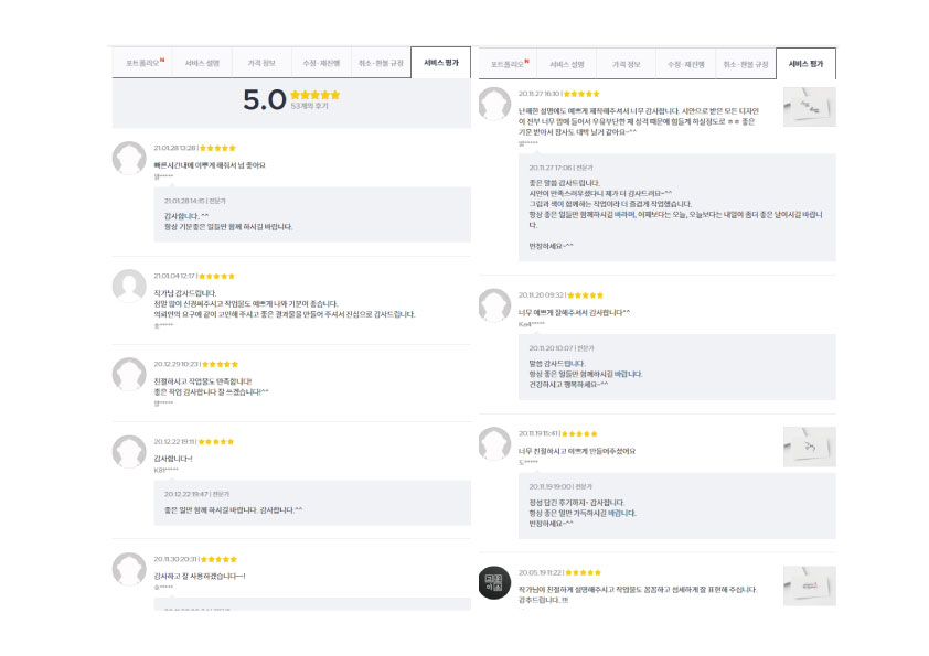 -작업 과정 : 주문 > 시안제안 > 수정작업 > 원본파일전달 > 완료 및 구매확정