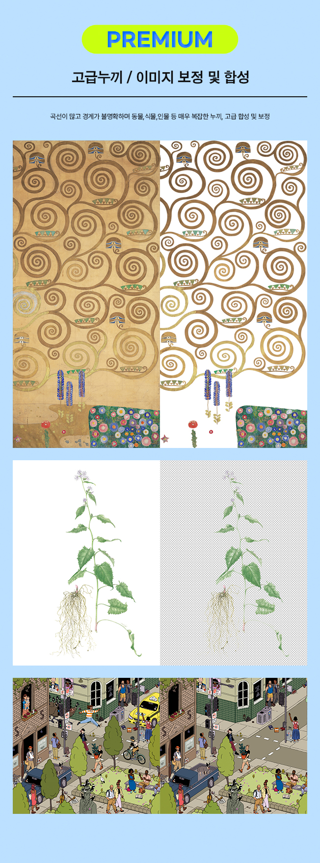 정확하고 꼼꼼한 누끼작업과 이미지 편집을 통해 만족스러운 작업을 도와드리고 있습니다.