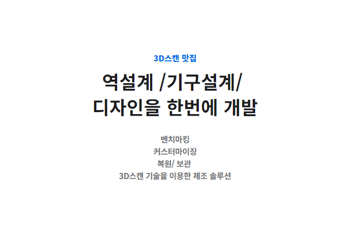 - 제공범위 : 500 x 500mm 사이즈 이하 제품스캔 가능(그외 사이즈는 출장비 추가 협의)