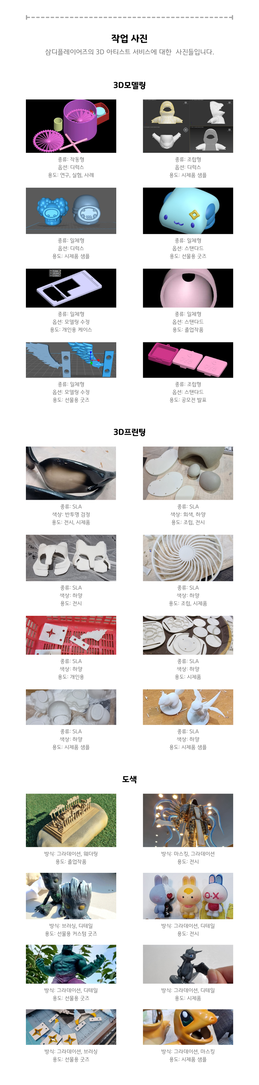 * 모델링 파일에 대한 오류에 인한 재출력 또한 추가 금액이 발생하니 문제가 발생하는 부분에 대한 안내를 받으셨을 경우, 수정을 하시거나 수정을 요청하시길 바랍니다.