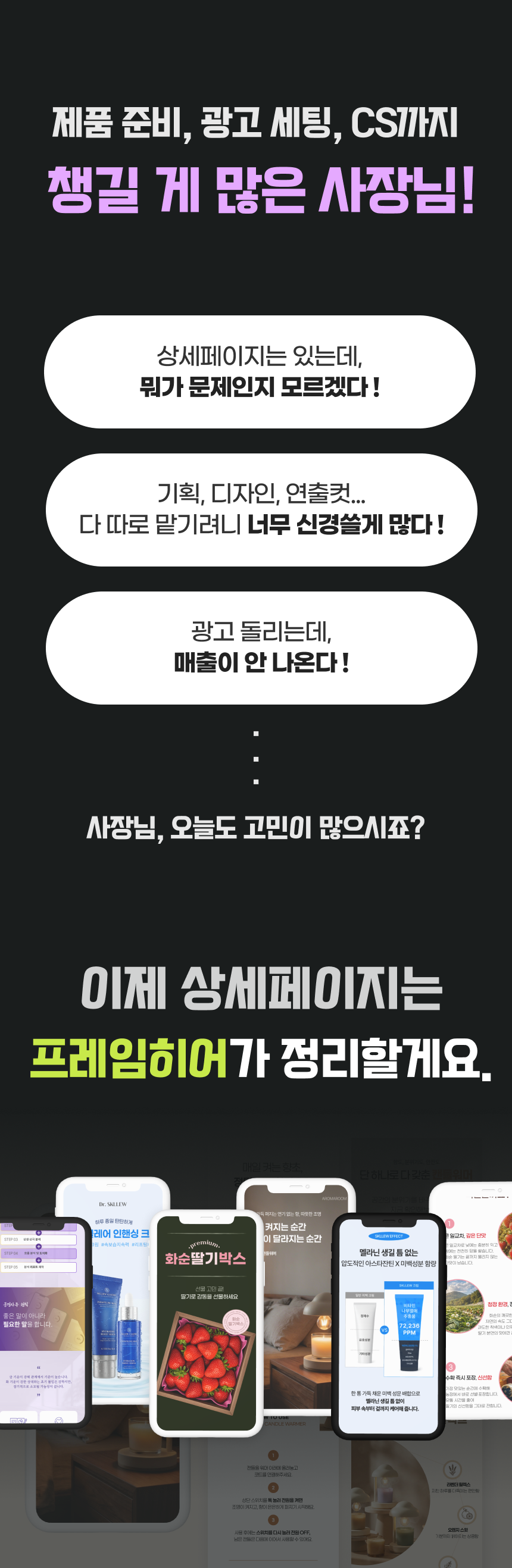 스토리를 매출로 전환하는 상세페이지 디자인, 프레임히어 입니다.