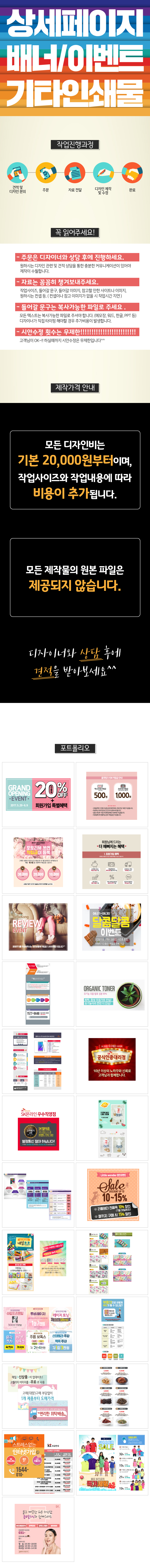 배너/팝업/스토어팜/이벤트/상세페이지/기타인쇄물 등 고객님과 실시간 소통하며 맞춤제작 해드립니다^^
