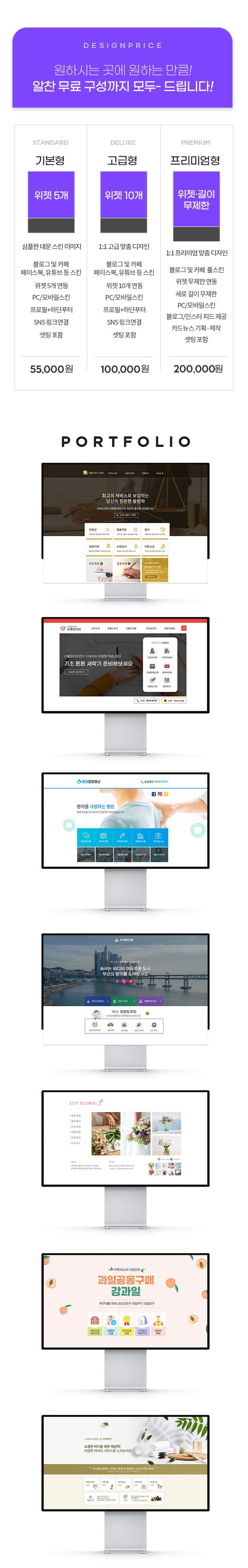 위젯5개+스킨+모바일커버+프로필+SNS/링크연동+무료세팅+하단 푸터 | 55,000원