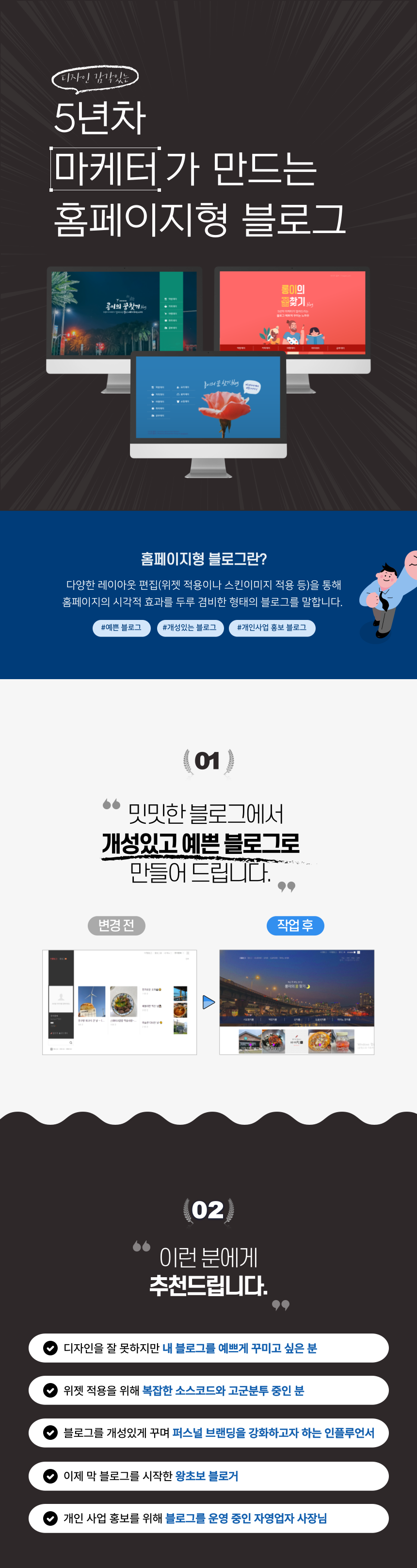 디자인 감각 있는 5년차 마케터가 홈페이지형 블로그 디자인을 제작해 드립니다!