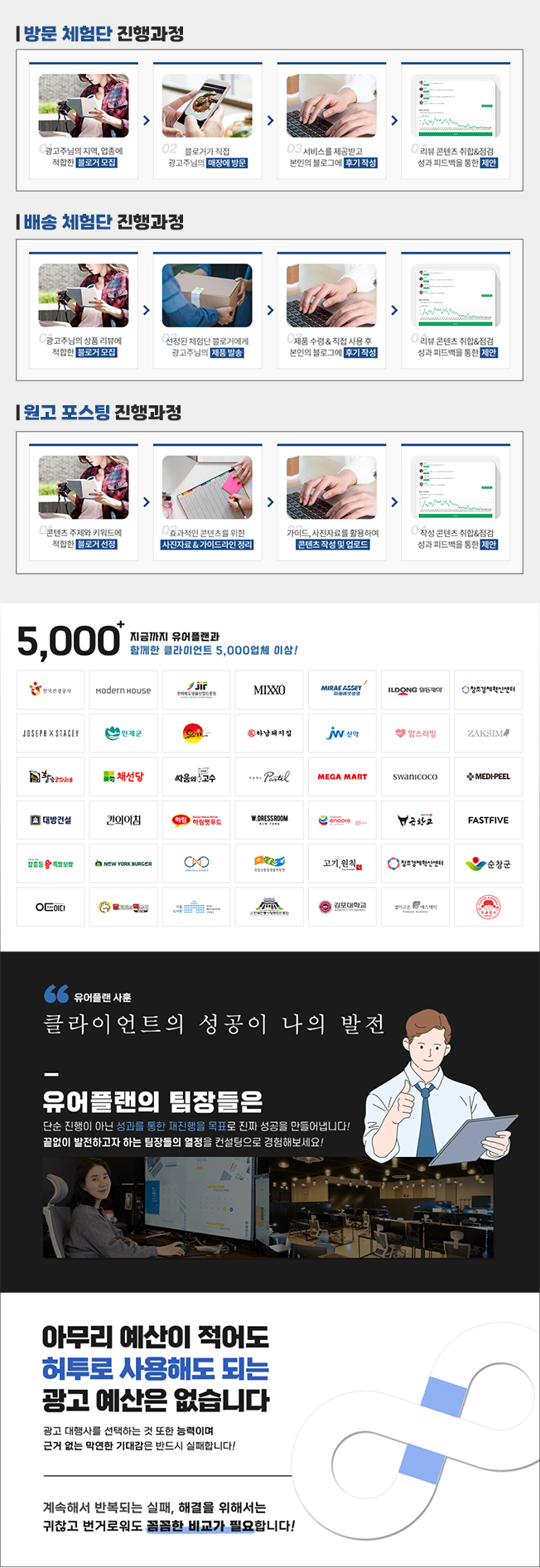 블로그 체험단 마케팅 서비스로 시작되었으며, 업계 최선을 자신합니다.