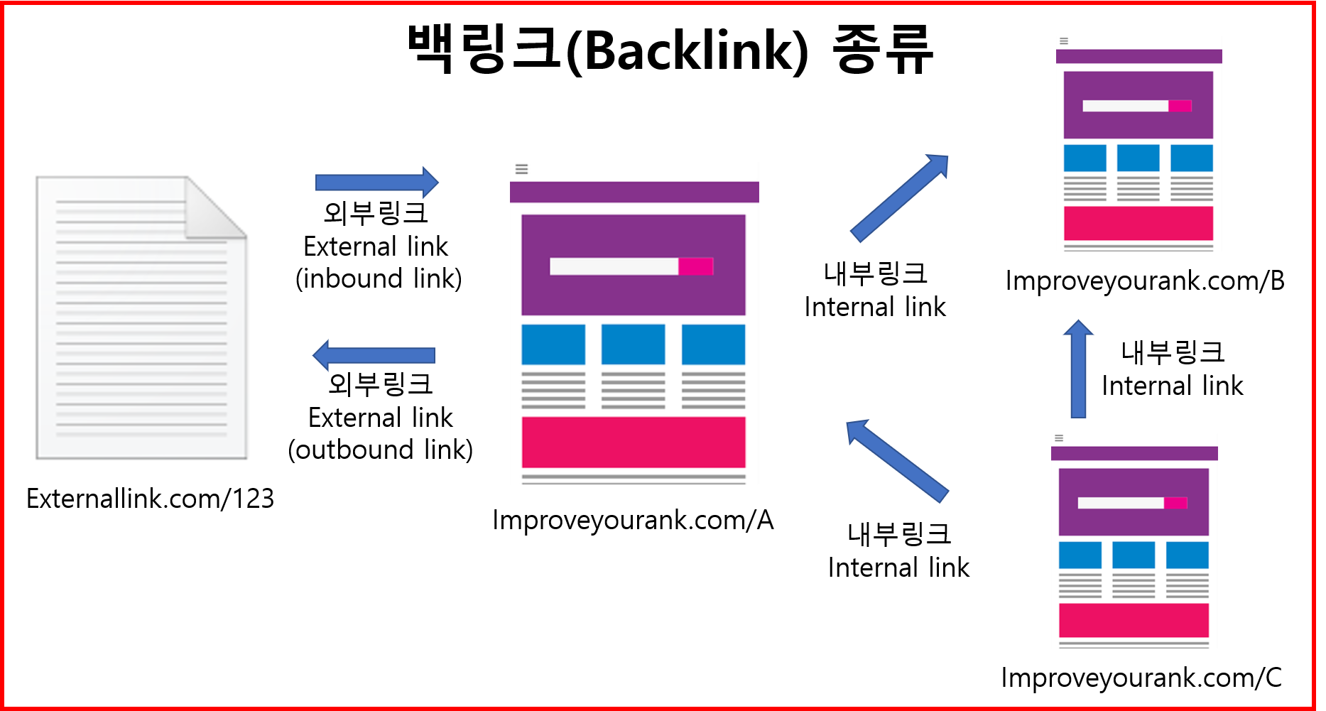 인터넷 상에서 백링크는 크게 내부링크와 외부링크로 나눌 수 있습니다.