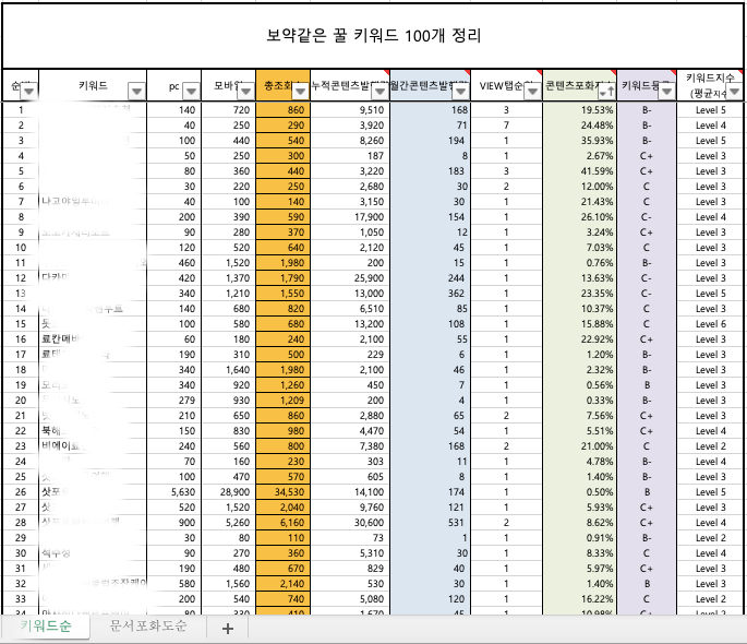 2. 총조회수(검색량) 100 ~ 3,000(문서발행량 및 문서포화도에 따라 1,2건 3,000이상 포함)