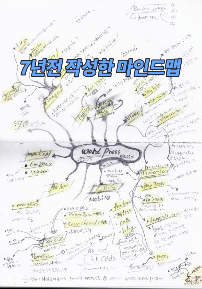 아래 이미지를 보시면 7년전 잘 그리지도 못하는 그림실력으로 마인드맵을 그렸던 실제 이미지를 보실수 있습니다...