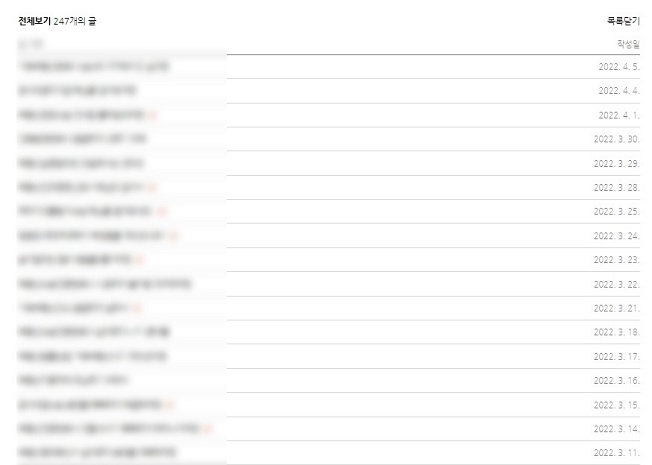 30일 기준으로 10건/20건으로 나누어 포스팅 작성되고 있으며
