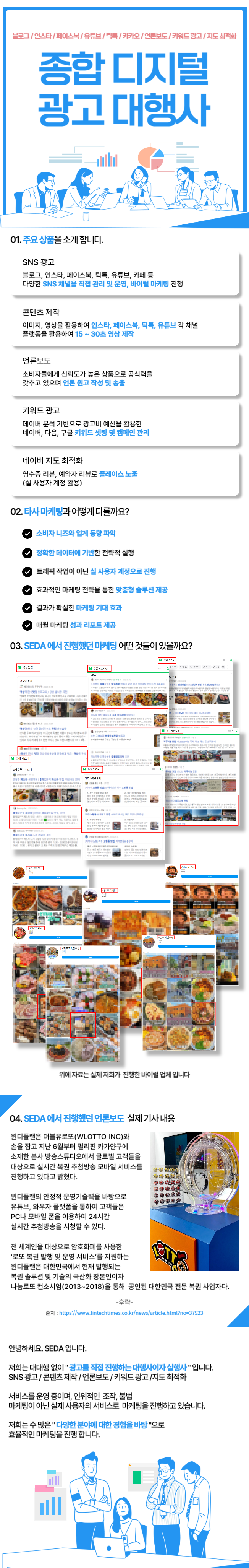 SNS광고 / 콘텐츠 제작/ 언론보도 / 키워드 광고 / 지도 최적화