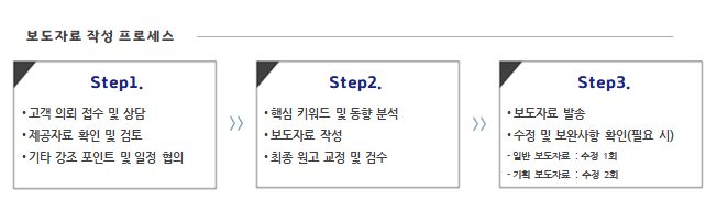 - 내용 : 고객사 제공 자료 중심의 일반 보도자료(5W1H 팩트 위주)