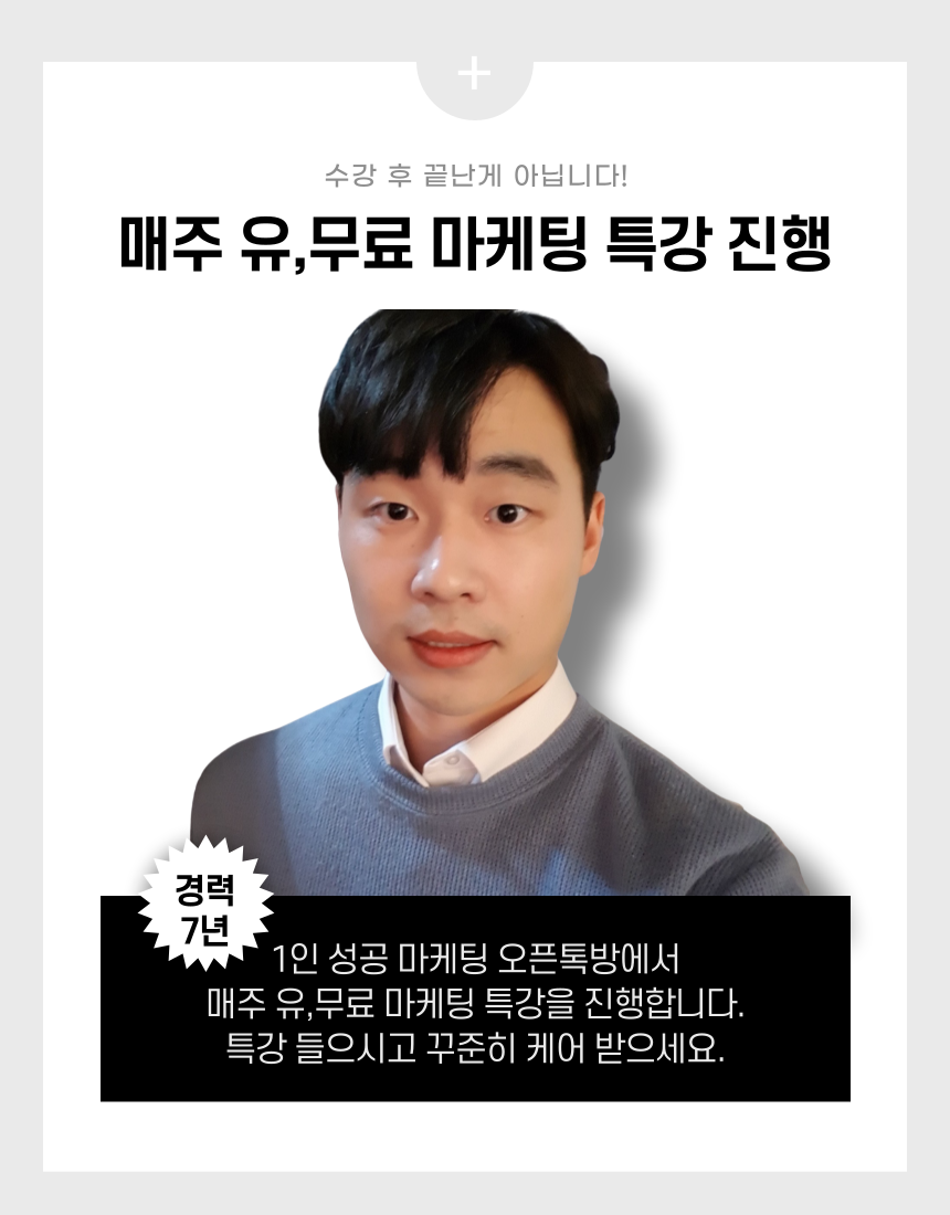2. 저와 함께 더 다양한 마케팅을 배우실 수 있도록 정기적인 특강에 참석하실 수 있습니다