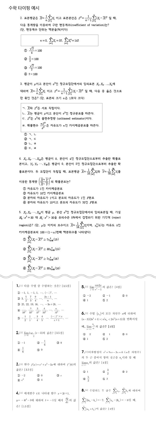 수학 시험지 및 문제집 수식 단순 타이핑 작업해드립니다.