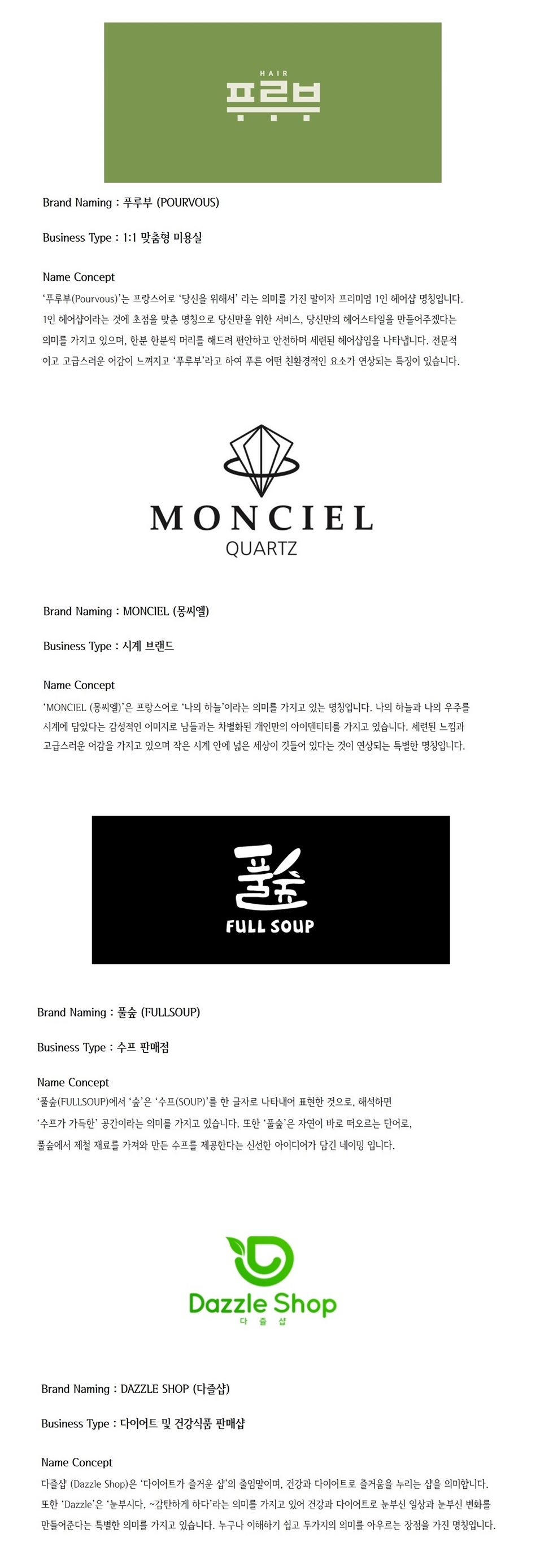 제안드린 네이밍 중 한 개의 시안만 채택하실 수