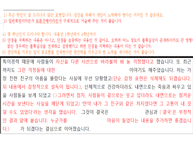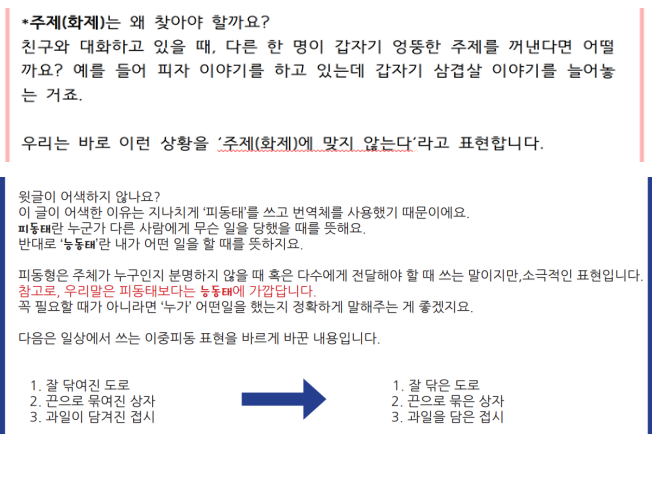 조사 하나, 쉼표 하나, 어순 하나 그냥 넘어가지 않고 함께 의견을 드립니다.