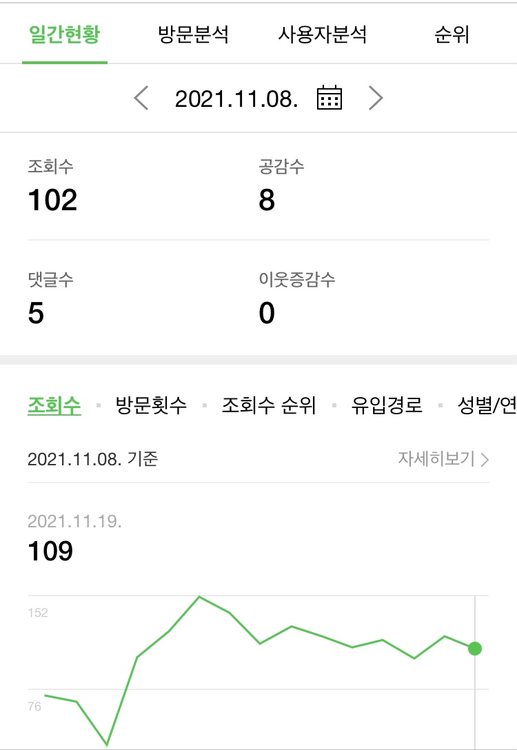 10일 안에 조회 수 100을 기록할 만큼 빠르게 성장시킬 수 있었습니다.